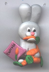 Monroe Designs Each piece is hand sculpted out of polymer clay so each bunny gets his own personality. The clay is FIMO™, it is the most durable of the polymer clays and very easy to work with. Christine says, "I like to work small with lots of detail, as you can see with all of my clay items." |