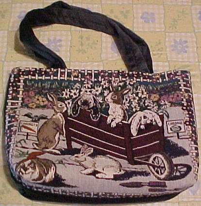 Rabbits Tapestry Tote beautiful tapestry design Different on each side of tote Measures 17" high X 17" wide #LCC1420 designed exclusively for BUNNYRABBIT.com reg $35.00 sale $25.00 |